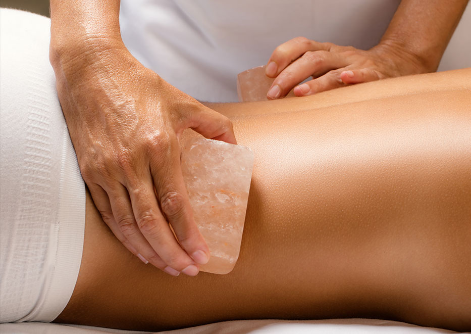 Complimentary Steam, Blue Algae Seaweed Wrap, Himalayan Salt Stone Massage with aromatherapy and penetrating deep heat essential oils and moist heat pack, Ultimate Fountain Facial, Special Spa Pedicure, Paraffin Manicure.
