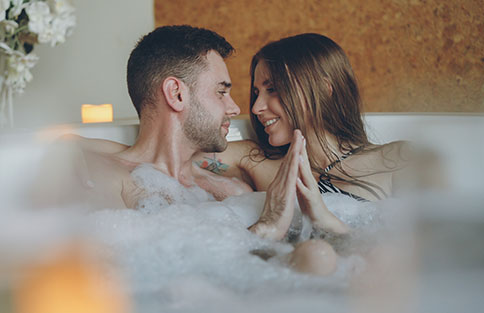 Private Whirlpool for Two with bath salts, Side-by-Side 80-Minute Fountain Signature Massages with aromatherapy and penetrating deep heat essential oils and moist heat packs, and Side-by-Side Signature Facials. (SIDE-BY-SIDE FACIALS AVAILABLE IN RAMSEY ONLY)
